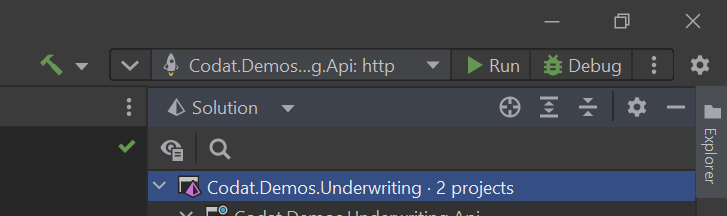Note that the other directory in the repository, Codat.Demos.Underwriting.Api.Tests, contains a series of unit and integration tests for the demo app and is not needed for you to run the demo project.